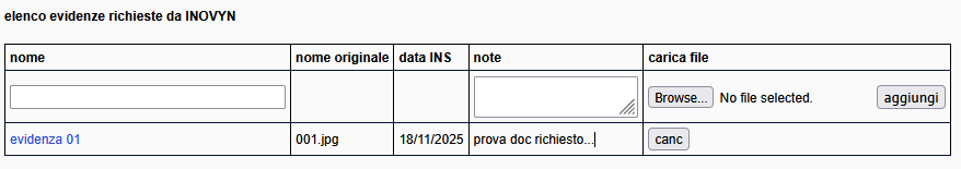 Schermata EVIDENZE RICHIESTE